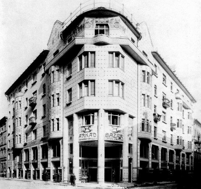 A Vágó László és József által tervezett, 1908-ban épült szecessziós lakóházban a Rákóczi út, Dohány és Síp utcák keresztezésénél, a Késmárky és Illés cég Árkád Bazár elnevezésű játékárúháza 1909-ben nyílt meg a földszinti terekben. A különös hangulatú épület márványburkolatán gyermekjátékok és állatfigurák sorakoztak a pécsi Zsolnay-gyár eozinos kerámiájából formálva. Európa egyik legnagyobb játékáruháza volt.