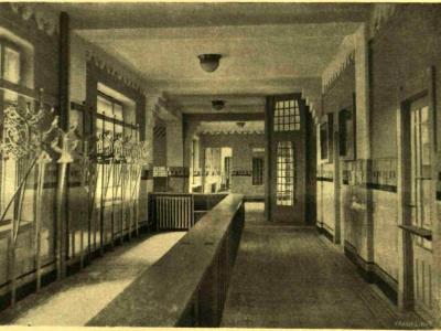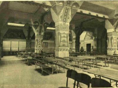 Az épületben 396 hálófülke és 42 hálószoba volt. A hálófülkék az emeleti folyosókról nyíltak,  2,50 méter hosszúak és l,80 méter szélesek voltak; az ajtók felett 65 centiméter magas drótháló pótolta a falat, hogy a folyosóról a villanyfényt beengedje. Bennük vaságy, lecsapható asztal, szék és fogas volt. A fülkék sorait a mosdóhelyiségek zárták.  --- A földszinten helyezték el a könyvtárat, a játékszobát (kártyajáték tiltva), a látogatók fogadószobáját.  A szálló konyhájában ezer ember számára lehetett főzni, az ebédlőben egyszerre 288-an étkezhettek. ---- Elkülönített részen betegszobát és orvosi rendelőt rendeztek be.  ---- A szuterénban fürdők, mosókonyhák, raktárak, gépházak voltak.