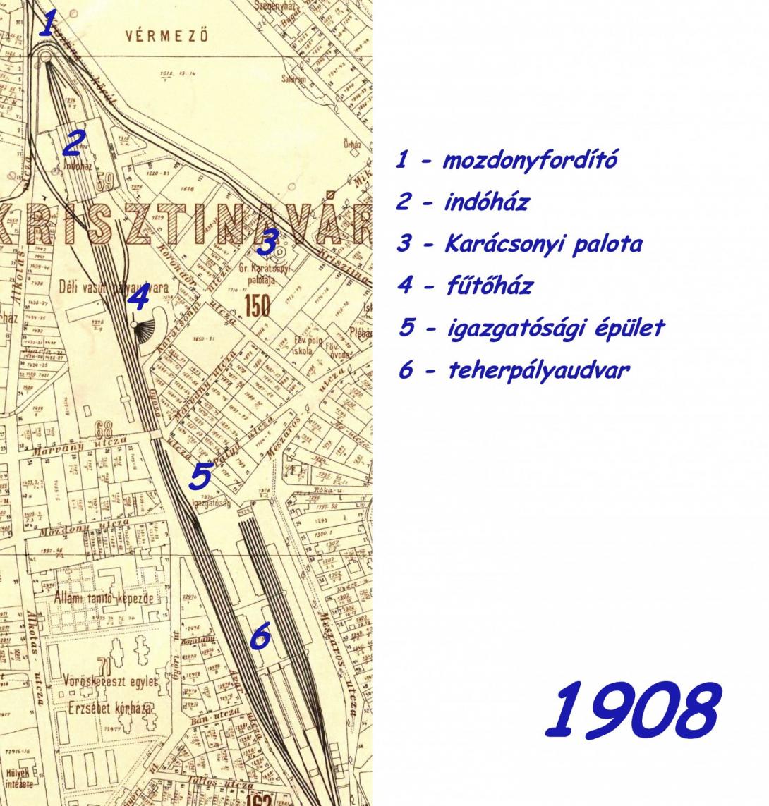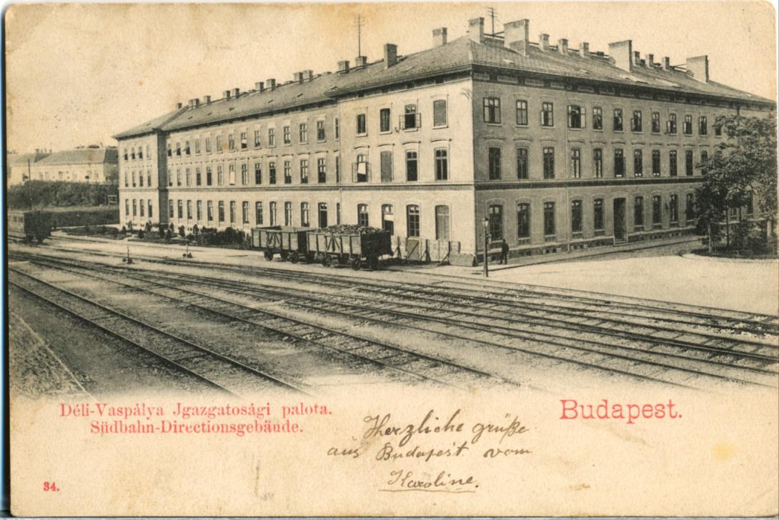 A kétemeletes igazgatósági épület első – a tehervágányokra merőleges – szárnya az 1860-as évek végén, a kiegészítő – a vágányokkal párhuzamos – szárnya 1910 körül épült. (Címe I. Mészáros u. 17-19. volt.) A Társaság megszűnését követően, más intézményekkel együtt a Kereskedelemügyi Minisztérium hídtervezéssel foglalkozó osztálya kapott itt helyet. A II. világháború során (a teljes pályaudvarral együtt) rommá bombázták. Helyreállítására nem került sor.