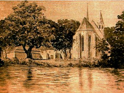 A Sziget keleti oldalán feltehetően már az 1190-es években Imre király udvarházat építtetett. Ennek jelentősége akkor nőtt meg, amikor az óbudai királyi várat a mongolok (tatárjárás 1241-42) fölégették, így IV. Béla idején átmenetileg a szigeti udvarház lett a királyi székhely. E mellé kezdték építeni 1246-tól a margitszigeti domonkos rendi apácakolostort Szűz Mária (Boldogasszony) tiszteletére, IV. Bélának a tatárjárás után tett fogadalma értelmében – miszerint, ha elkerülik a pusztulást, születendő gyermekét az egyháznak ajánlja – lánya, Margit lakhelyeként. Margit már 1252-ben megérkezett a szigetre, 12 másik apácával együtt. Ez a zárda a középkorban a sziget legfontosabb intézménye, legjelentősebb és leggazdagabb egyházi épülete volt. A rend vagyonának alapját hatalmas birtokai adták, húsz év múltán már nyolcvan falu tartozott hozzá. A kolostor jelentősége Margit 1270-ben bekövetkezett halála után még tovább növekedett, boldoggá, majd szentté avatása kapcsán. Később a közelben férfi szerzetesházat is építettek. A templom szentélyével teljesen egybeépült királyi udvarház jelentős országos események színhelye volt. (Az udvarház egyetlen ránk maradt ábrázolása Enea Vico 1542-es metszete, amelyen a pesti oldalon lévő udvarház mögül csak a domonkos templom tornya látszódik ki.) A 14-15. században is támogatták királyaink az apácakolostort, amelyet többször átépítettek és bővítettek. A 14-15. század fordulóján meghosszabbították a szentélyt, a 15. század második felében, Mátyás király uralkodása időszakában (1458-1490) történt az utolsó nagy átépítés. Ekkor megerősítették a várszerű kerítésfalakat is. Az 51 m hosszú, 12 m széles templom új gótikus hálóboltozatot kapott.