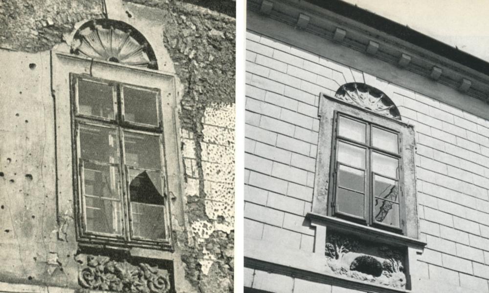 Az 1960-as évek elején végzett műemléki helyreállítás fő törekvése az volt, hogy a ház középkori állapotában eredeti házak határai érzékelhetőek legyenek, ezen túl láthatóvá váljanak a középkori nyíláskeret-maradványok. Ezért a Hess András téri főhomlokzat mellett a Táncsics Mihály (volt Bécsi kapu) utcai homlokzaton az eredeti három épület határait a falsarkok kőmaradványai és az eltérő vakolatrészek, míg a Fortuna utcai homlokzaton az eredeti két épületet az eltérő párkánymagasságok mutatják.