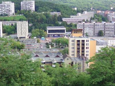Háttérben a Karancs szálló és az Állami Biztosító épülete
