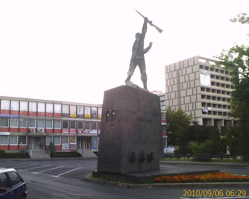 És a központi szobor a Fegyvert fogó munkás. 1959-ből